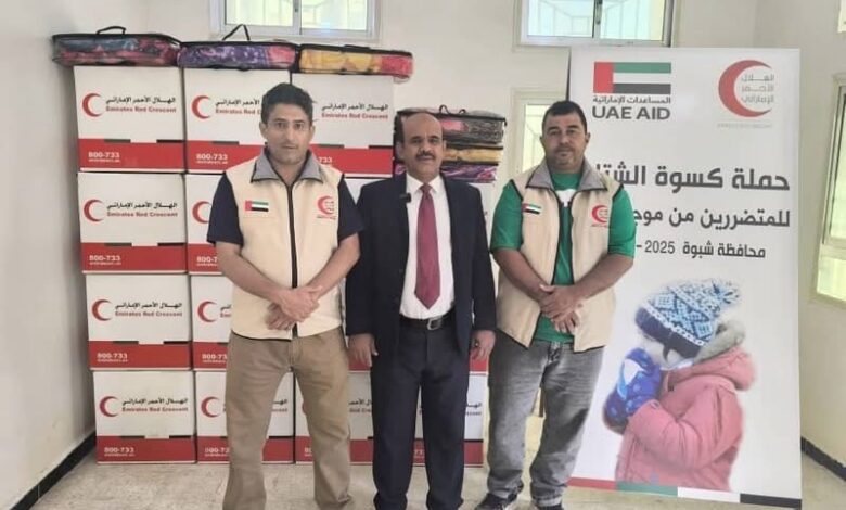 برعاية المحافظ بن الوزير وبتمويل الأشقاء في دولة الإمارات: هيئة الهلال الأحمر الإماراتي تدشن حملة كسوة الشتاء.