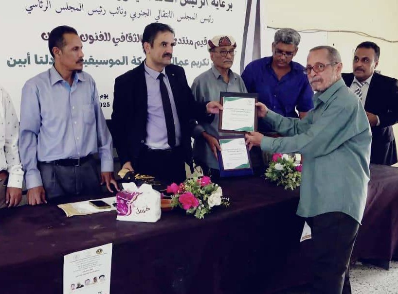 برئاسة العميد الجبواني…فريق التوجيه والرقابة الرئاسي يشارك في حفل تكريم منتدى الاتحاد الثقافي بأبين لعمالقة الحركة الموسيقية