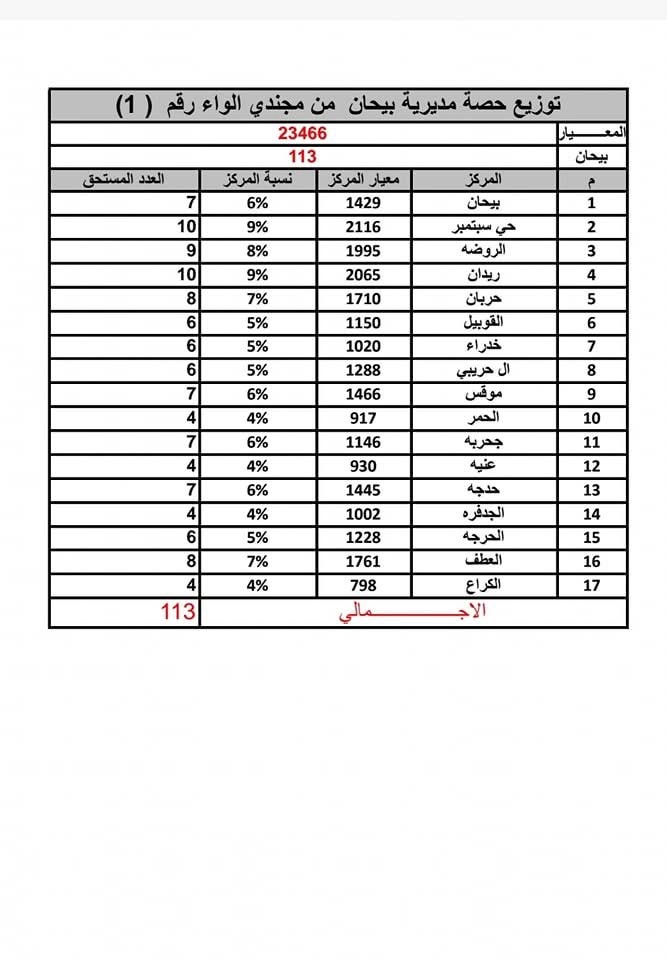 لجنة استقبال المجندين الجدد لقوات دفاع شبوة توضح آلية توزيع الحصص على المديريات