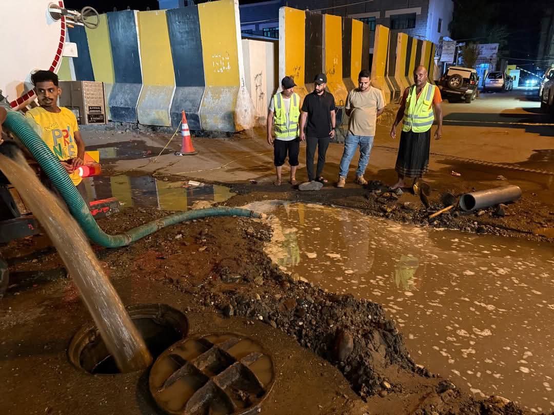 مدير عام صيرة يطلع على أعمال اصلاح كسر في خط المياه بالقرب من البنك المركزي