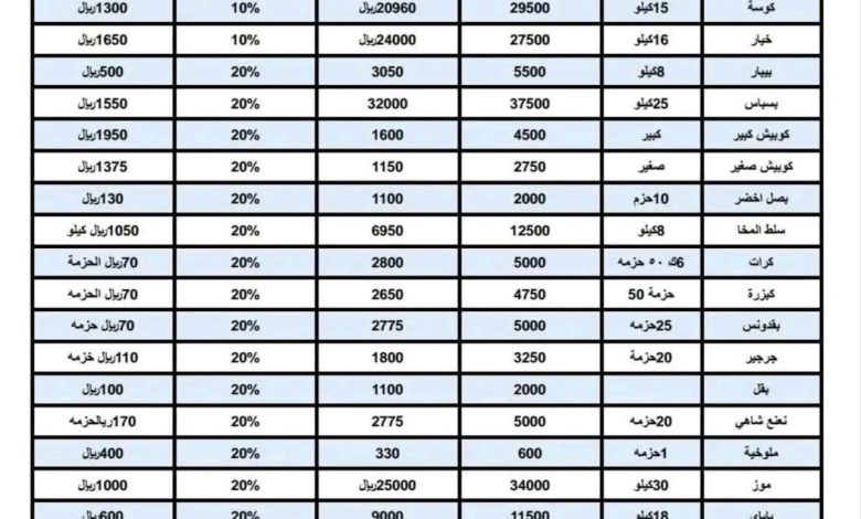 الصناعة والتجارة تعلن قائمة أسعار الخضروات والفواكه المحدثة ليوم الأحد