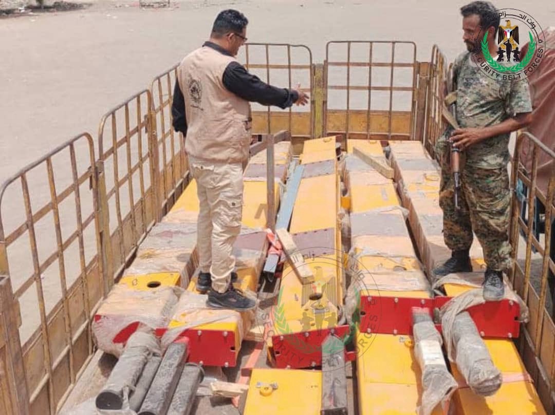 أثناء عملية تفتيش في نقطة الحسيني…الحزام الأمني بلحج يضبط رافعات مخصصة لإنزال حاويات السفن كانت في طريقها إلى الحديدة