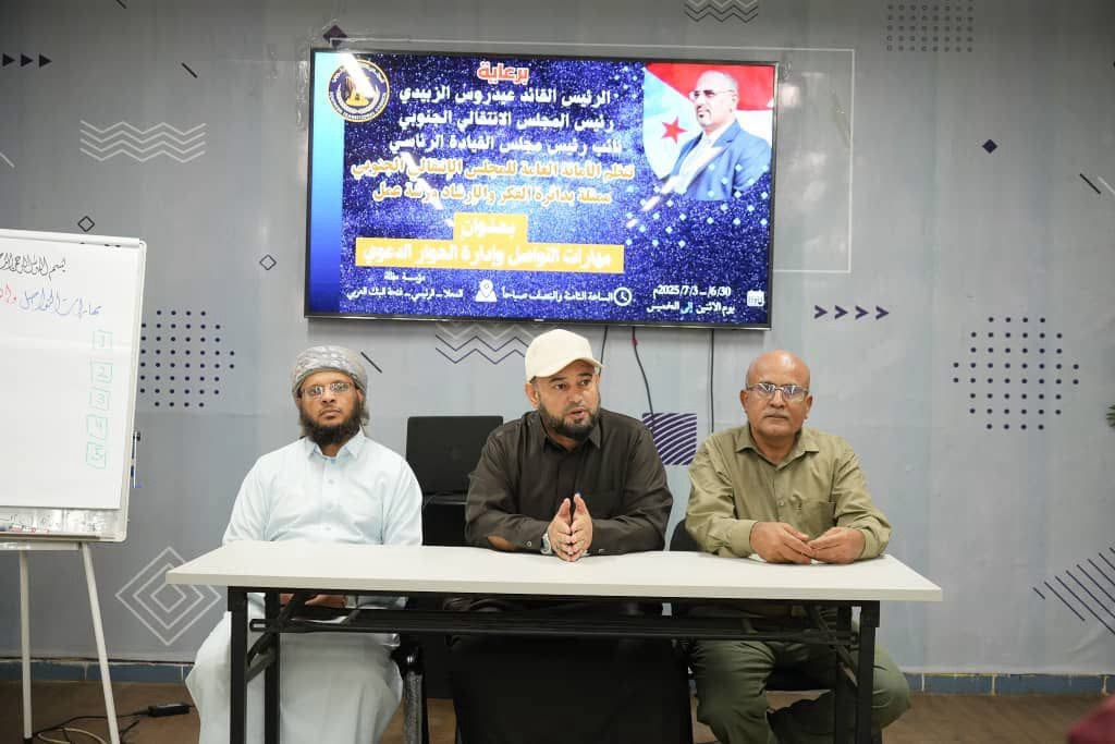 دائرة الفكر والإرشاد في الأمانة العامة تدشّن ورشة تدريبية في مهارات التواصل وإدارة الحوار الدعوي بالعاصمة عدن