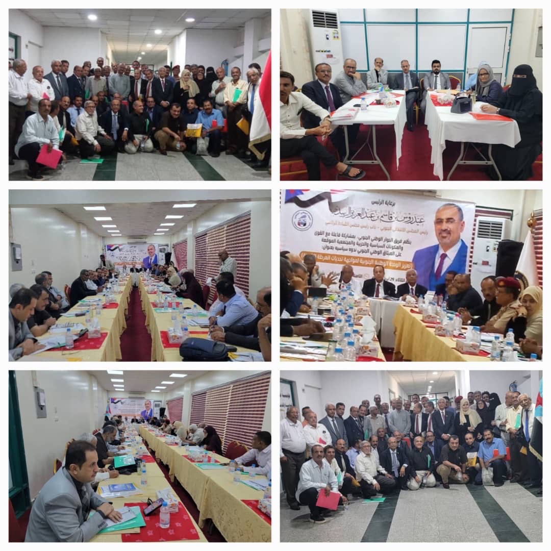 برعاية الرئيس القائد عيدروس بن قاسم الزُبيدي ندوة سياسية لفريق الحوار الوطني الجنوبي عن تعزيز الوحدة الوطنية الجنوبية لمواجهة تحديات المرحلة الراهنة