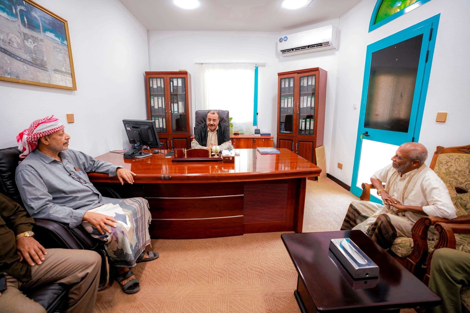 اللواء بن بريك يلتقي الشيخ الشرفي ورئيس غرفة حضرموت التجارية