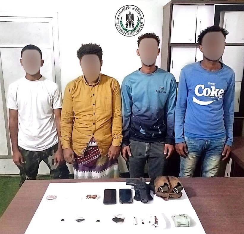 حزام عدن يضبط أربعة متهمين بحوزتهم مخدرات وسلاح غير مرخص في ثلاث عمليات أمنية