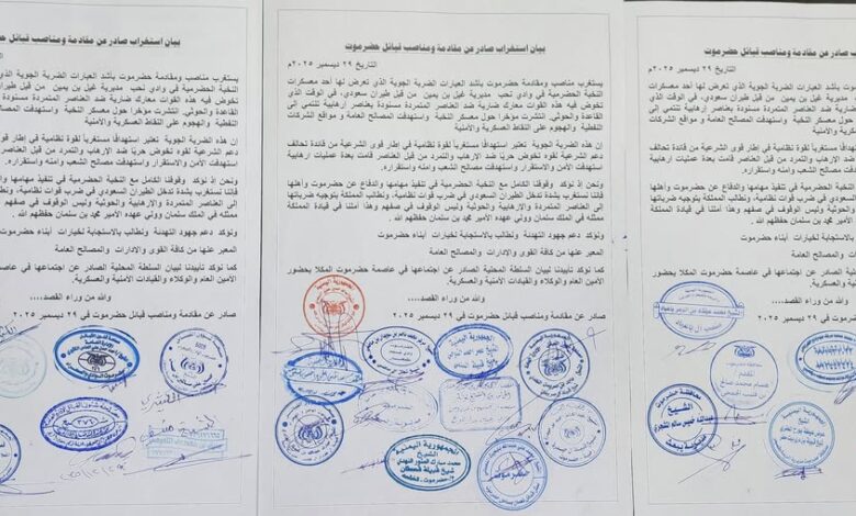 مقادمة ومناصب قبائل #حضرموت تستنكر قصف الطيران السعودي لمعسكر النخبة الحضرمية بمديرية غيل بن يمين.
