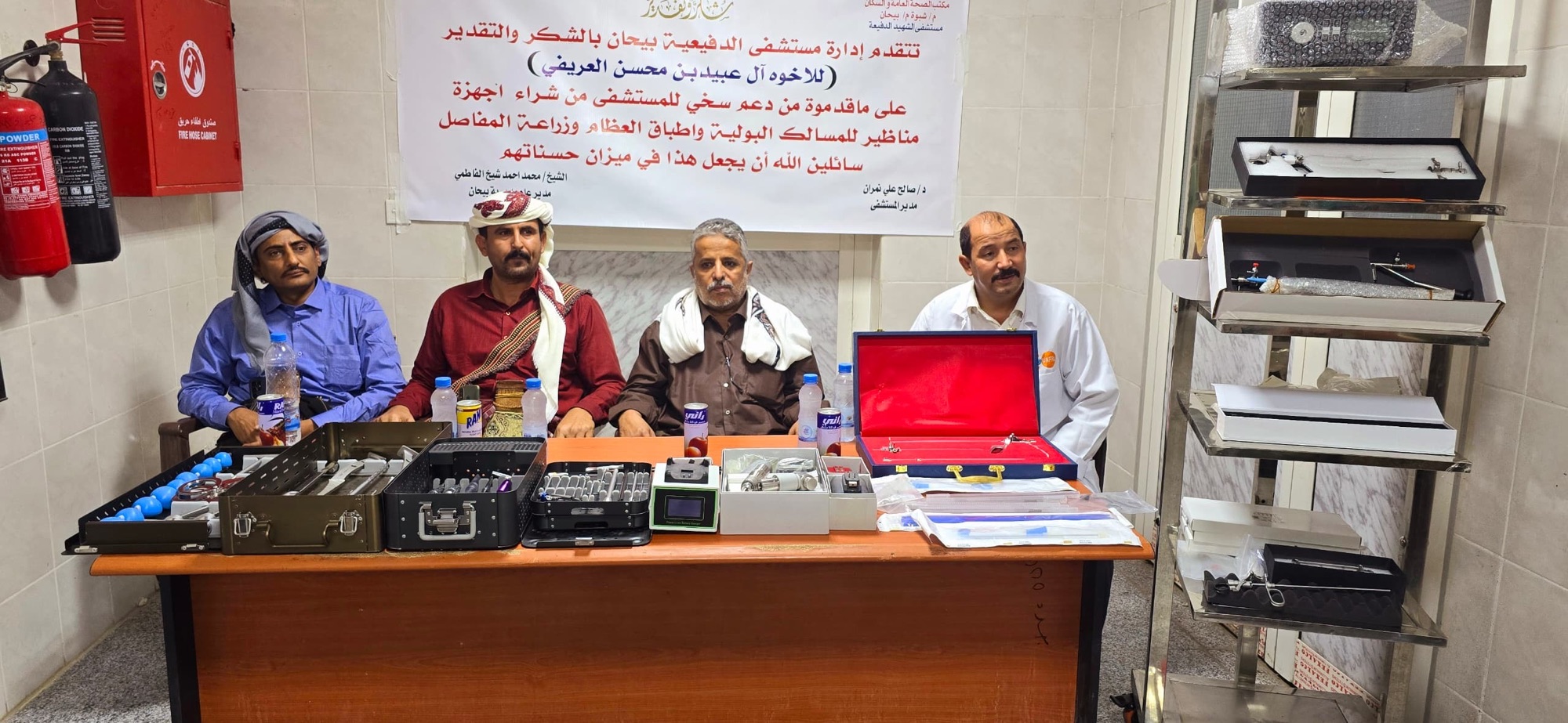 بحضور الفاطمي مدير عام بيحان , ادارة مستشفى الشهيد الدفيعة تكرم اسرة ال عبيد بن محسن العريفي المصعبي