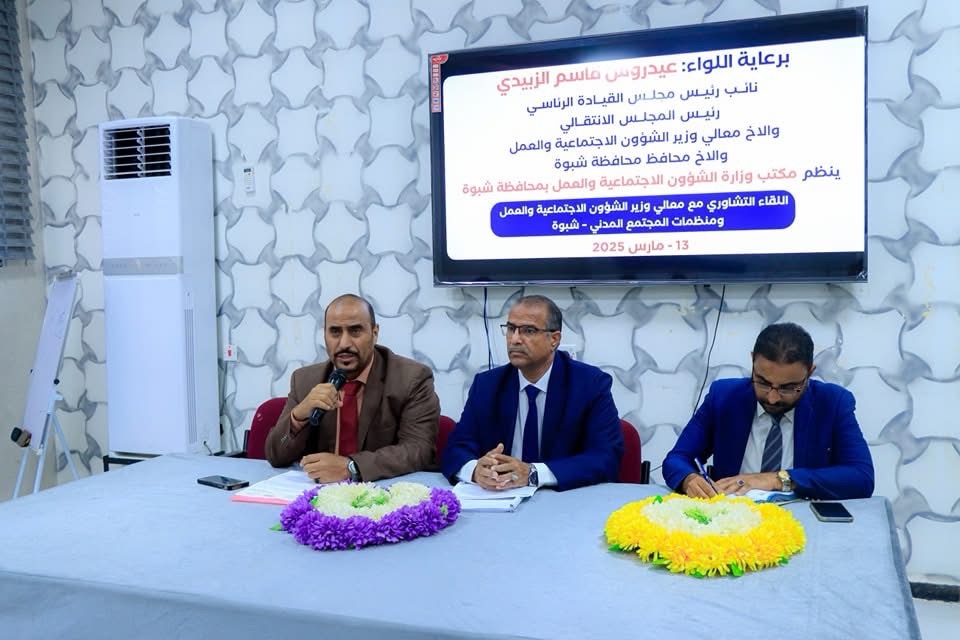 وزير الشؤون الاجتماعية والعمل يعقد لقاء بمنظمات المجتمع المدني في محافظة شبوة