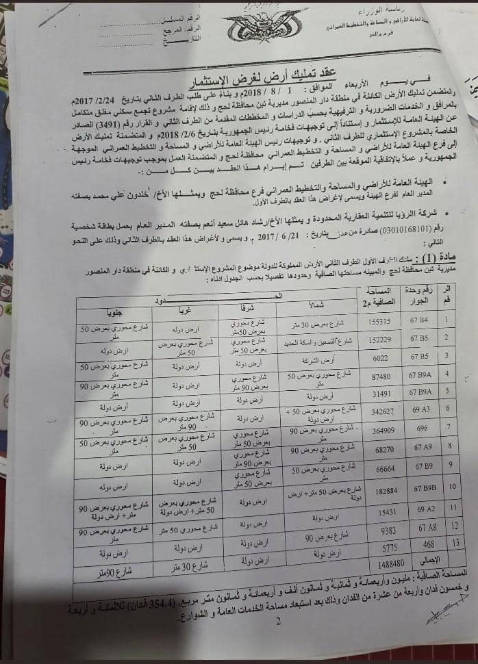 فضيحة فساد كبرى: تمليك أراضي الدولة بمساحة 1.5 مليون متر لصالح رشاد هائل سعيد أنعم في تبن لحج