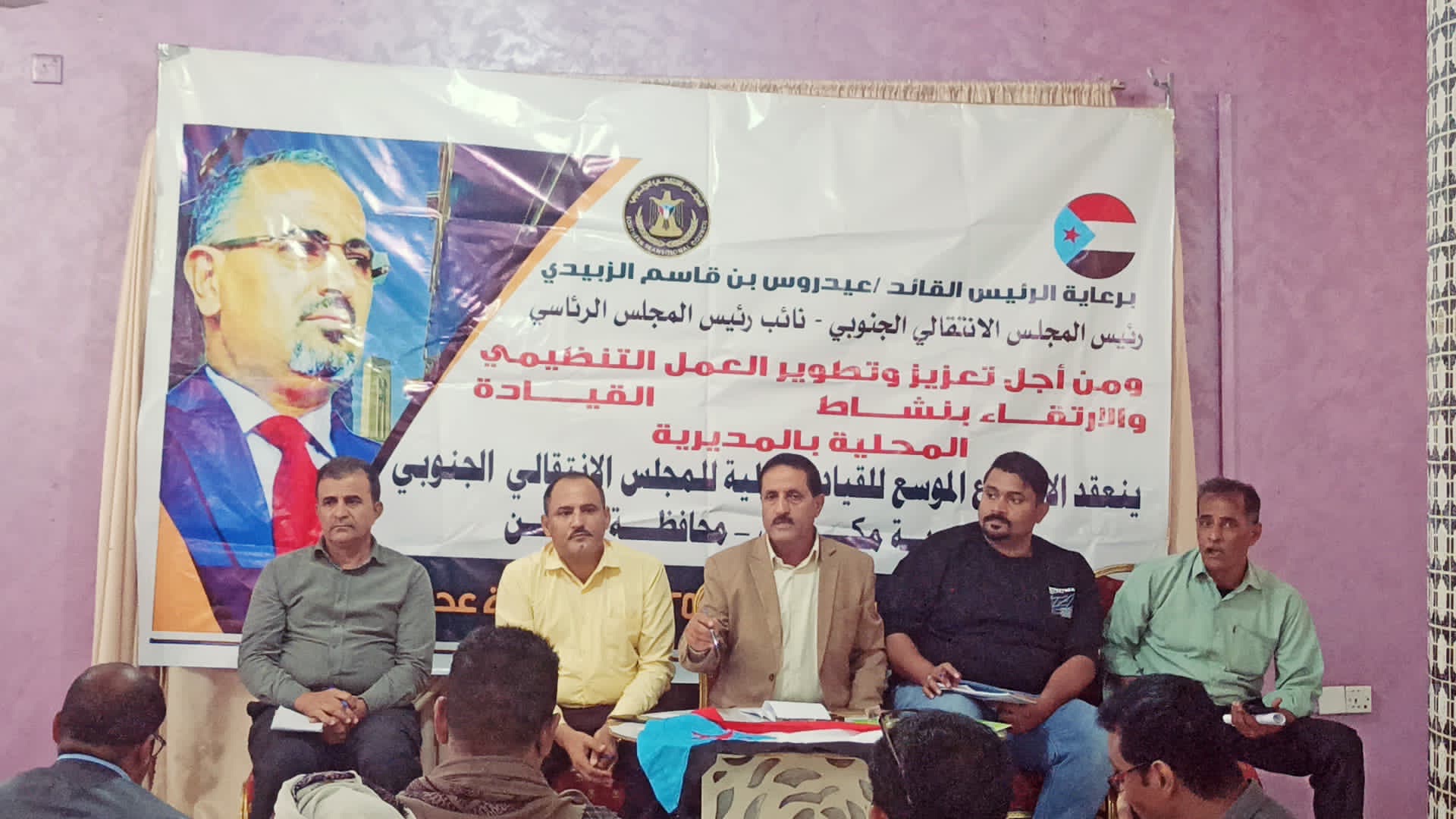 الشقي يرأس اجتماعًا موسعًا استثنائيًا لانتقالي مكيراس لمناقشة إعادة هيكلة الهيئة التنفيذية للمجلس بالمديرية
