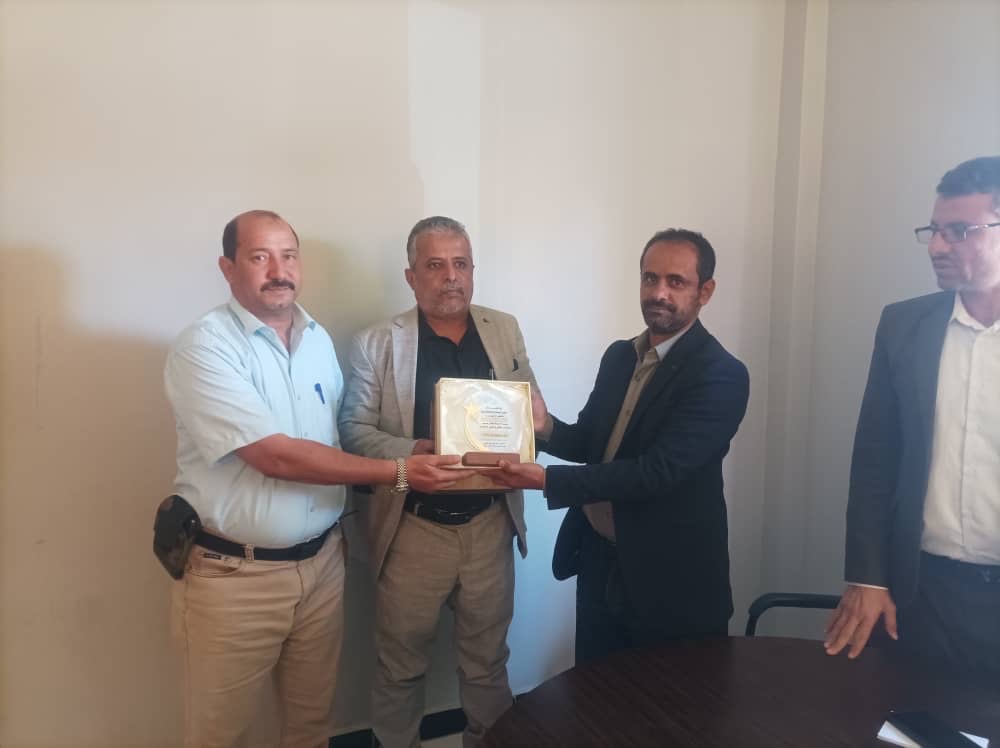 مكتب الصحة العامة والسكان بمحافظة شبوة يكرم مستشفى الشهيد الدفيعة العام بدرع افضل مستشفى للعام 2024م