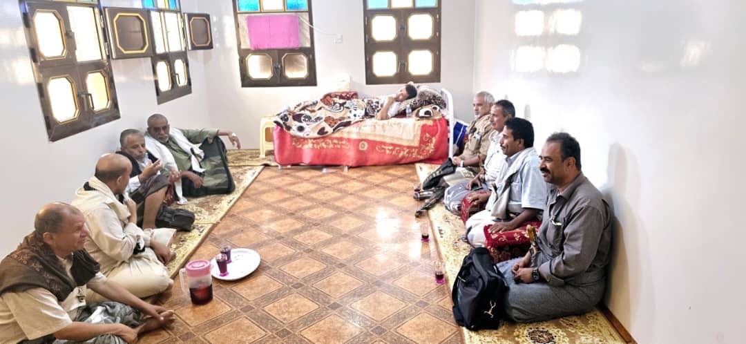 الفاطمي مدير عام بيحان واعضاء المكتب التنفيذي يقومون بزيارة لنجل مدير مكتب المدير العام بعد الحادث الذي تعرض له