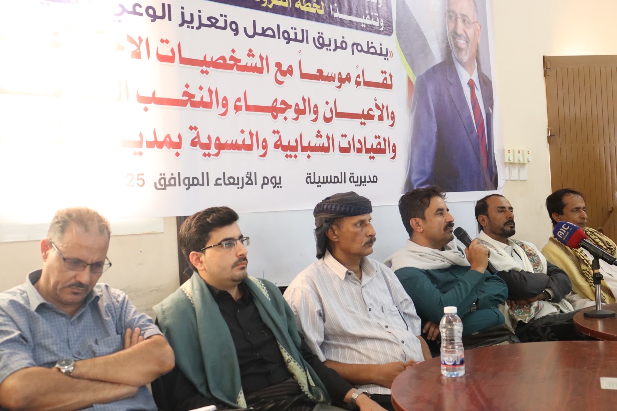 فريق التواصل وتعزيز الوعي السياسي يعقد لقاءً موسعاً مع مشايخ وأعيان وشباب ونساء مديرية المسيلة