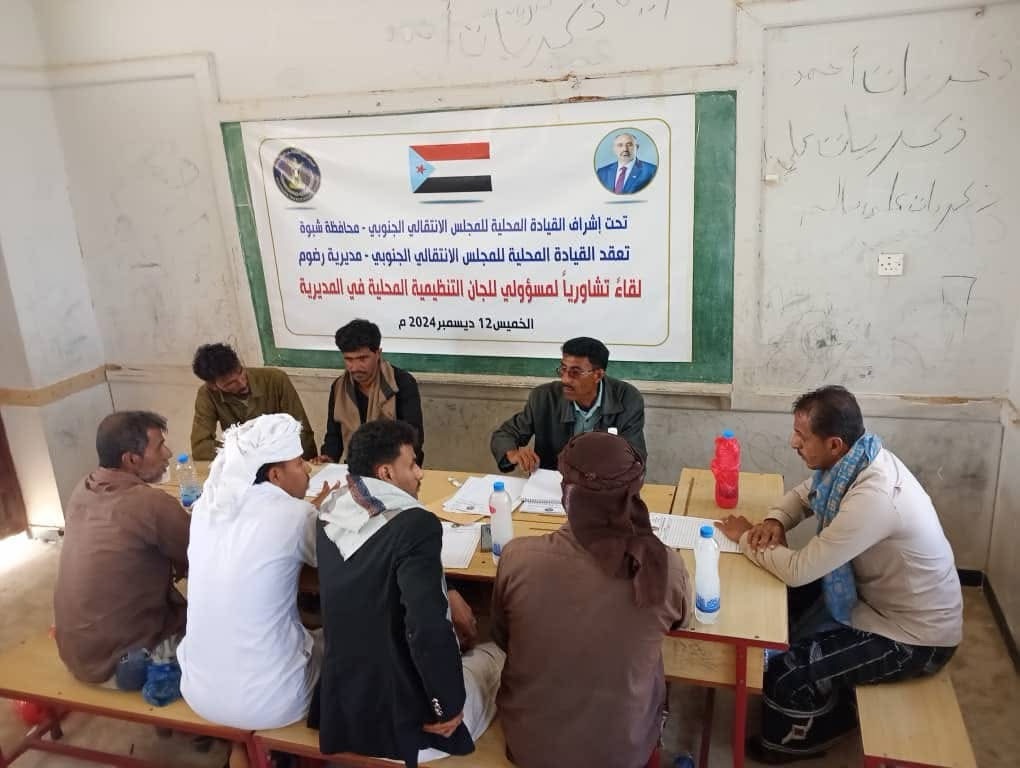 انتقالي رضوم ينظم لقاءً تشاوريًا لمسؤولي الشؤون التنظيمية باللجان المحلية بمراكز المديرية