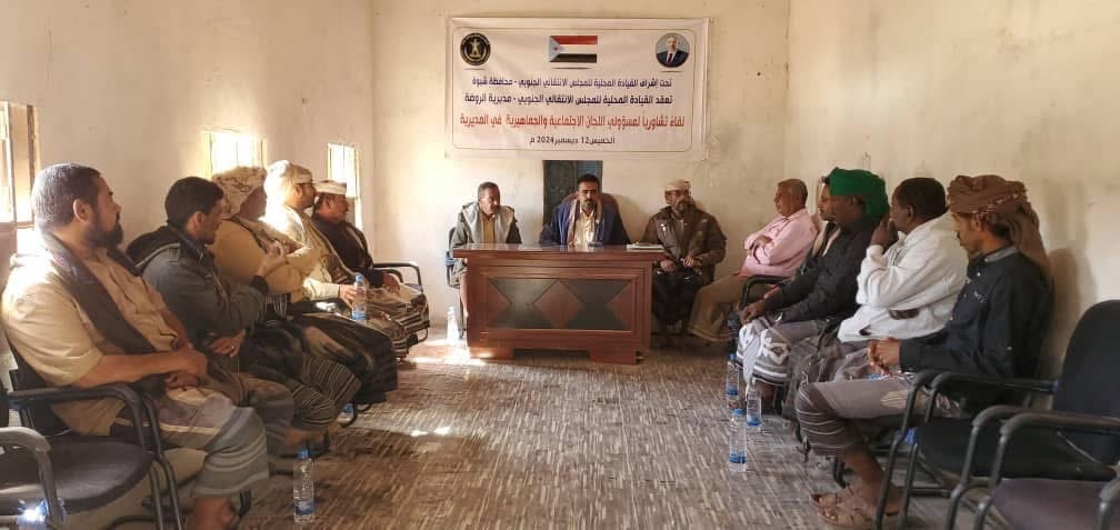 انتقالي الروضة ينظم لقاءً تشاوريًا لمسؤولي الشؤون الاجتماعية والجماهيريه باللجان المحلية بمراكز المديرية