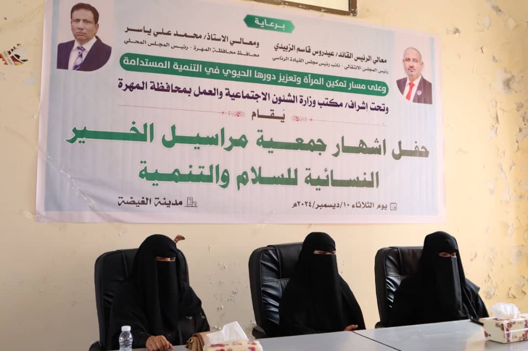 برعاية الرئيس الزبيدي ومحافظ المهرة بن ياسر.. إشهار جمعية مراسيل الخير النسائية للسلام والتنمية
