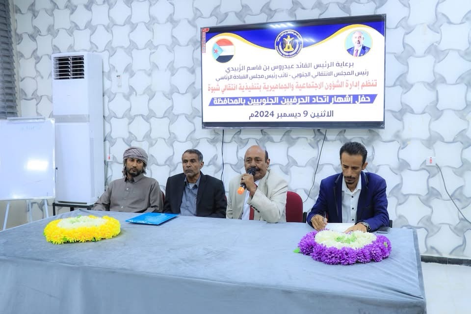 برعاية الرئيس الزُبيدي.. إشهار اتحاد الحرفيين الجنوبيين بمحافظة شبوة
