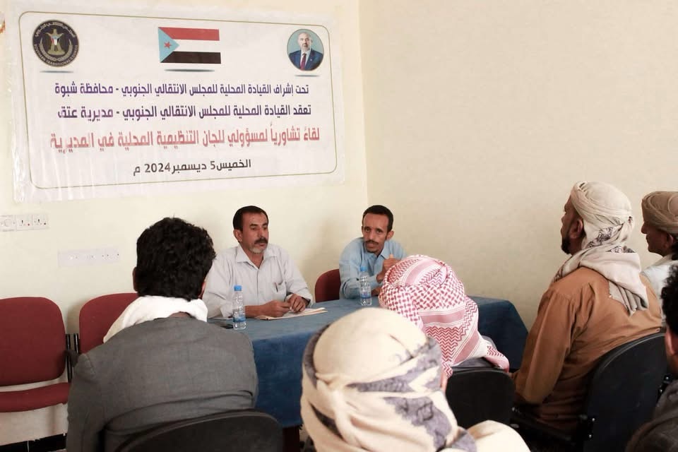 انتقالي عتق يعقد لقاءً تشاوريًا لمسؤولي الشؤون التنظيمية باللجان المحلية بالمديرية