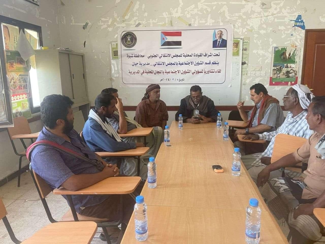 انتقالي حبان ينظم لقاءً تشاوريًا لمسؤولي الشؤون الاجتماعية باللجان المحلية بمراكز المديرية