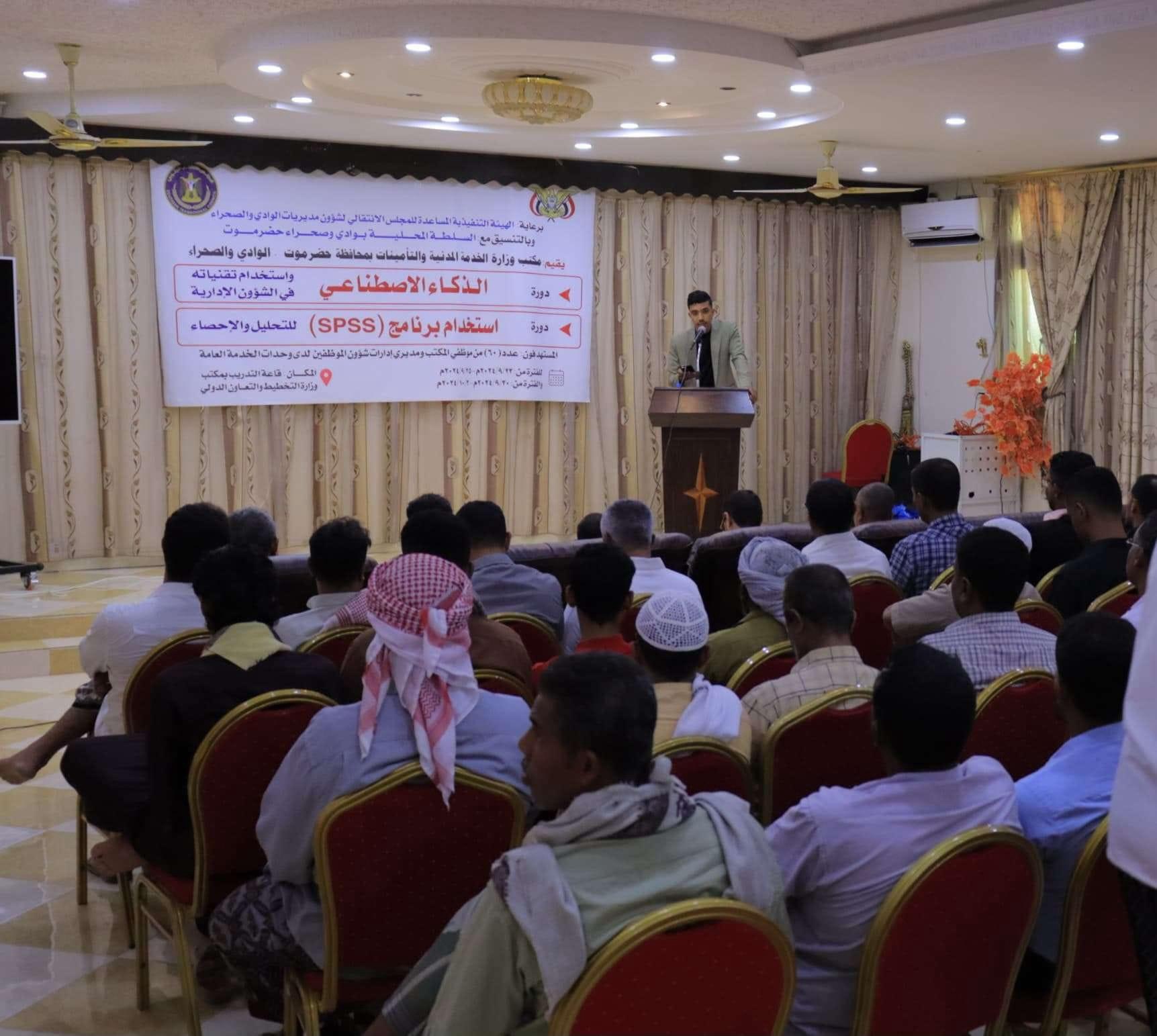 برعاية انتقالي وادي وصحراء حضرموت.. مكتب الخدمة المدنية يختتم دورتين في برنامج (SPSS) والذكاء الاصطناعي