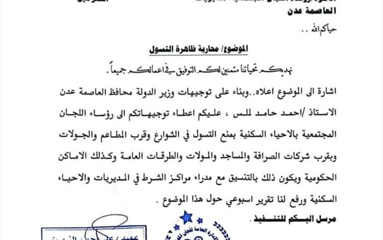 اللجان المجتمعية بالعاصمة عدن تصدر تعميماً هاماً.. وثيقة