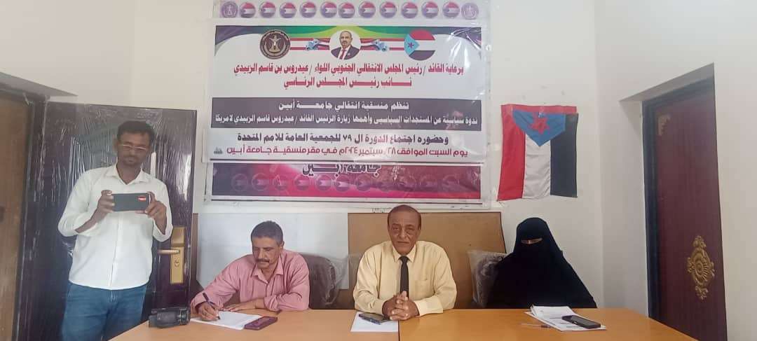 منسقية انتقالي جامعة أبين تنظم ندوة سياسية حول أهمية زيارة الرئيس الزُبيدي لأمريكا