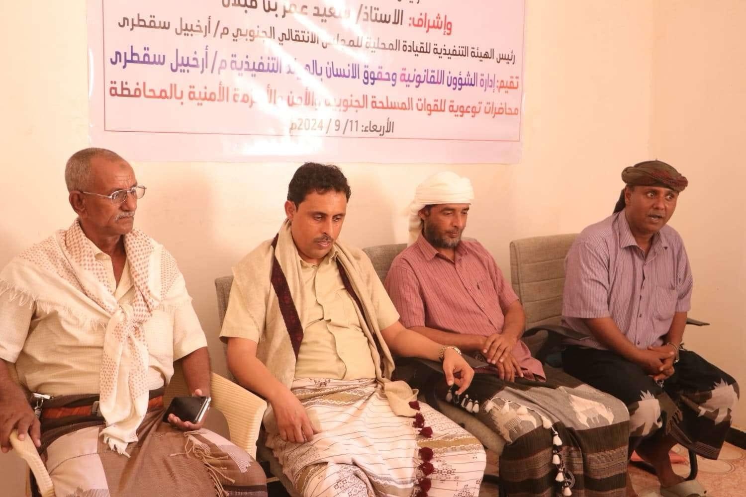 إدارة الشؤون القانونية وحقوق الانسان في تنفيذية انتقالي سقطرى تنظم محاضرة توعوية للقوات المسلحة الجنوبية والأجهزة الأمنية بالمحافظة