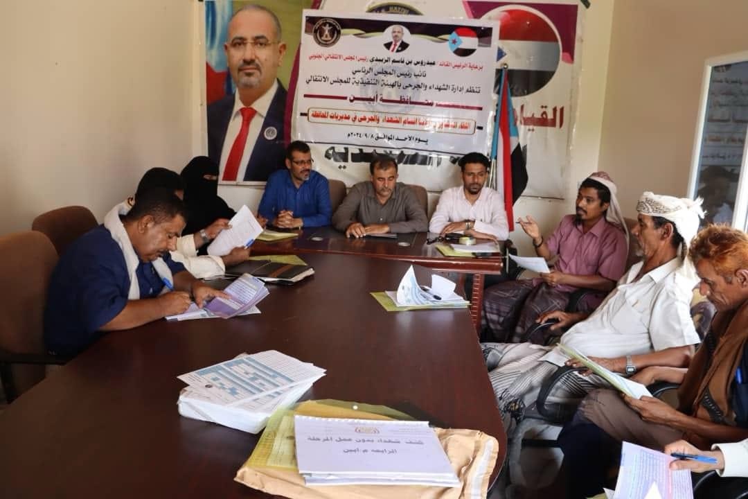 دائرة الشهداء والجرحى في تنفيذية انتقالي أبين تُنظّم ورشة عمل لإعداد قاعدة بيانات الشهداء والجرحى لرؤساء الأقسام بالمديريات