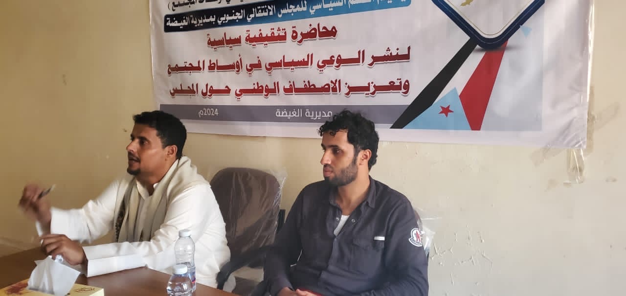 القسم السياسي في تنفيذية انتقالي الغيضة ينظم محاضره سياسية بعنوان “نشر الوعي السياسي في أوساط المجتمع وتعزيز الاصطفاف الوطني حول المجلس”