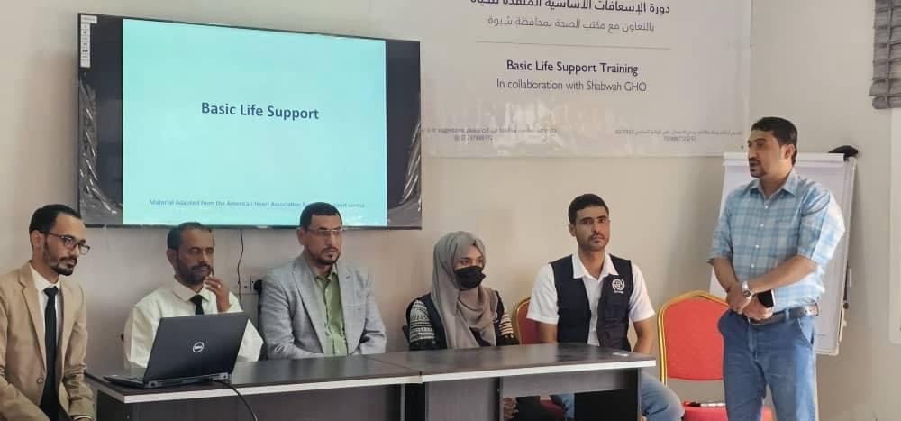 بحضور لمروق مكتب الصحة يدشن دورة تدريبيه في مجال الاسعافات الاولية المنقذة للحياة بتمويل الهجرة الدولية