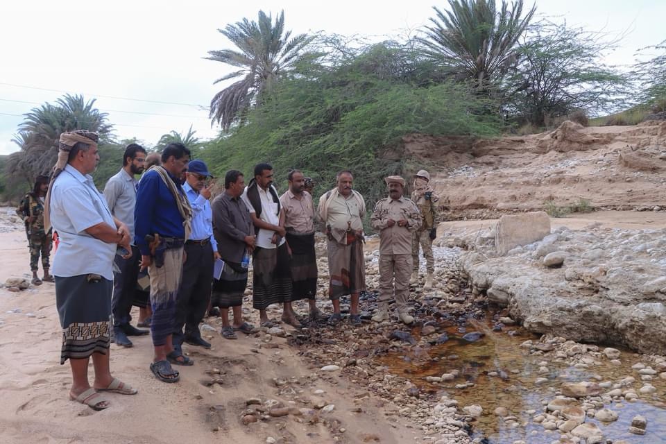الشيخ لحمر علي لسود يتفقد مواقع التسرب النفطي في مديريتي الروضة ورضوم