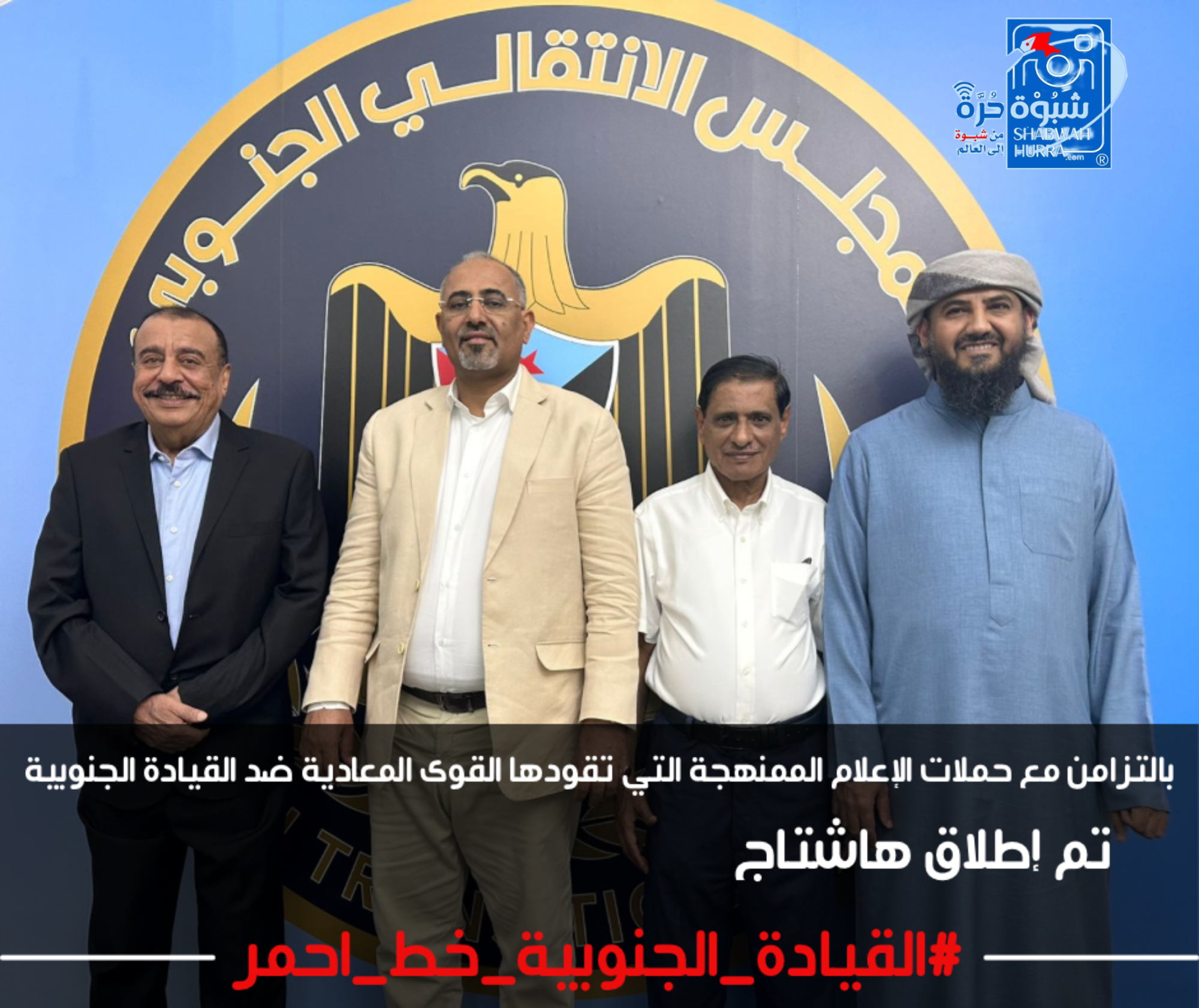 سياسيون ونشطاء جنوبيون يطلقون هاشتاج #قيادات_الجنوب_خط_احمر بالتزامن مع الهجمات الإعلامية الممنهجة التي تتعرض لها القيادة الجنوبية