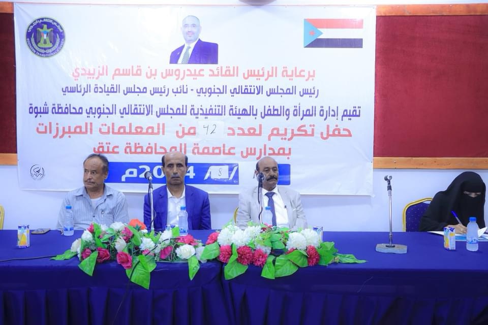 إدارة المرأة والطفل في تنفيذية انتقالي شبوة تُكرم عدداً من المعلمات المثاليات في مدارس العاصمة عتق