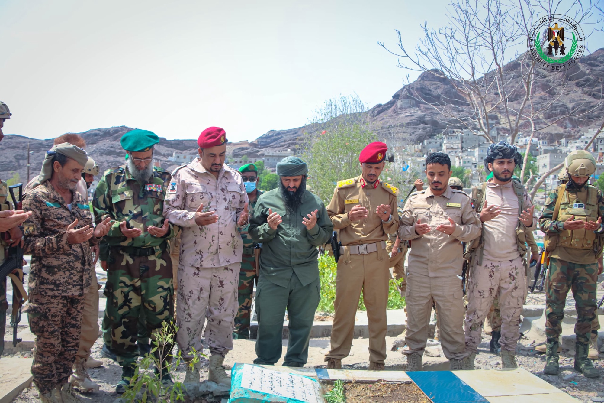 في الذكرى الخامسه لاستشهاده.. العميدان الوالي والمشوشي يزوران قبر الشهيد العميد أبو اليمامة ورفاقه